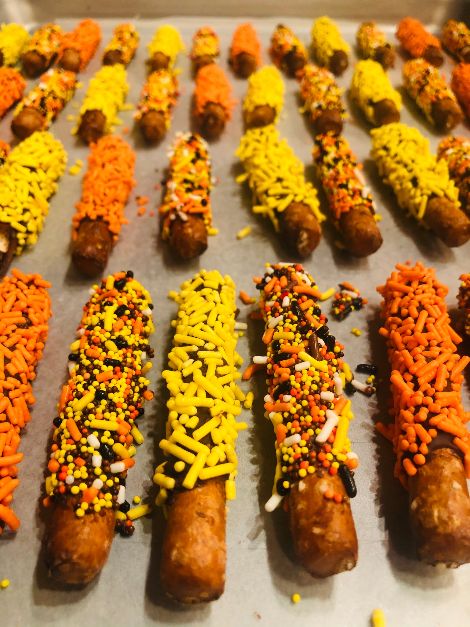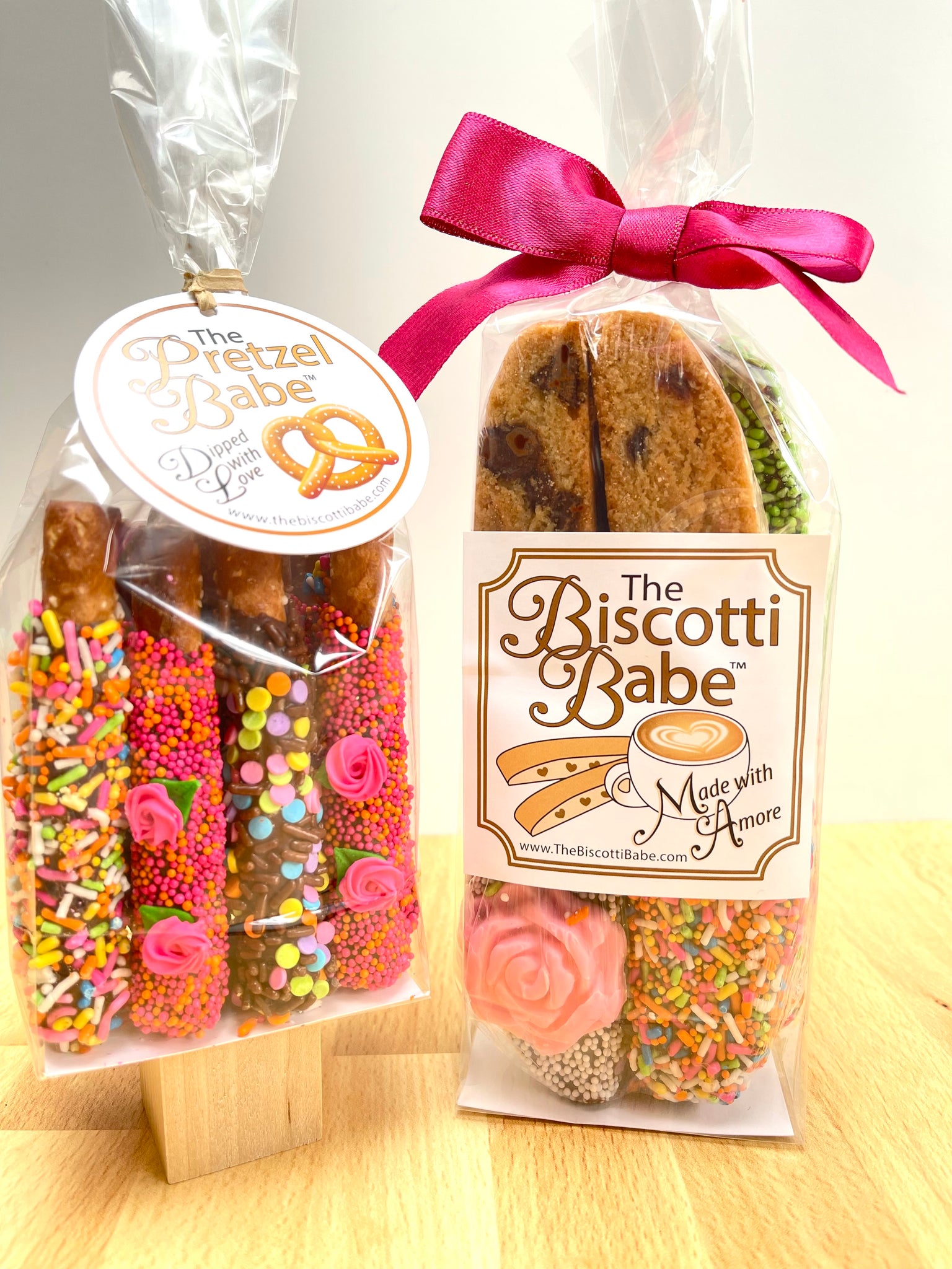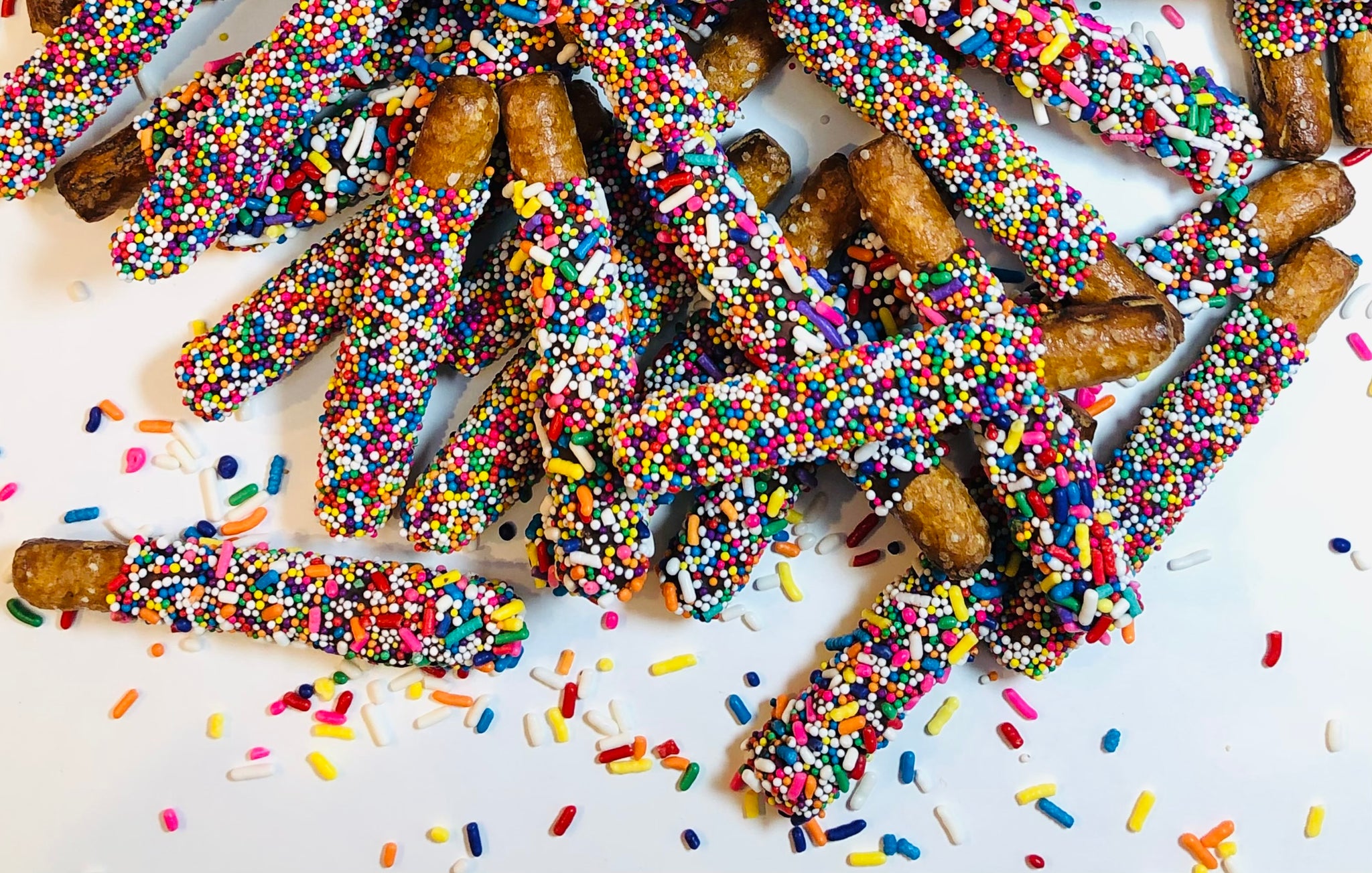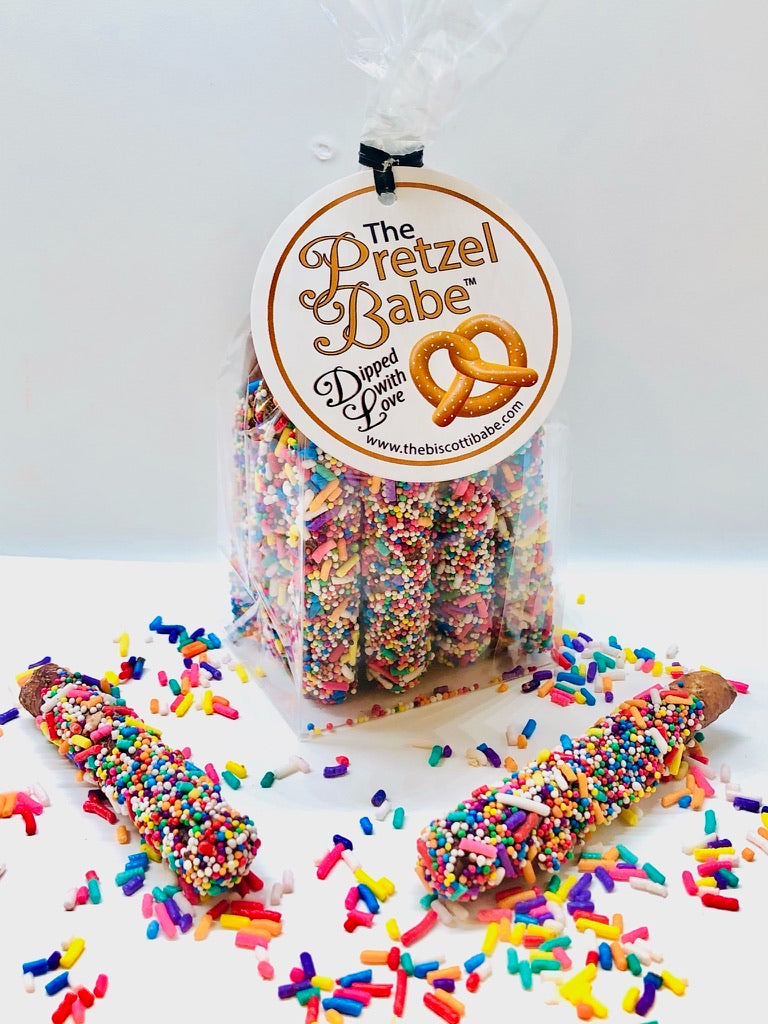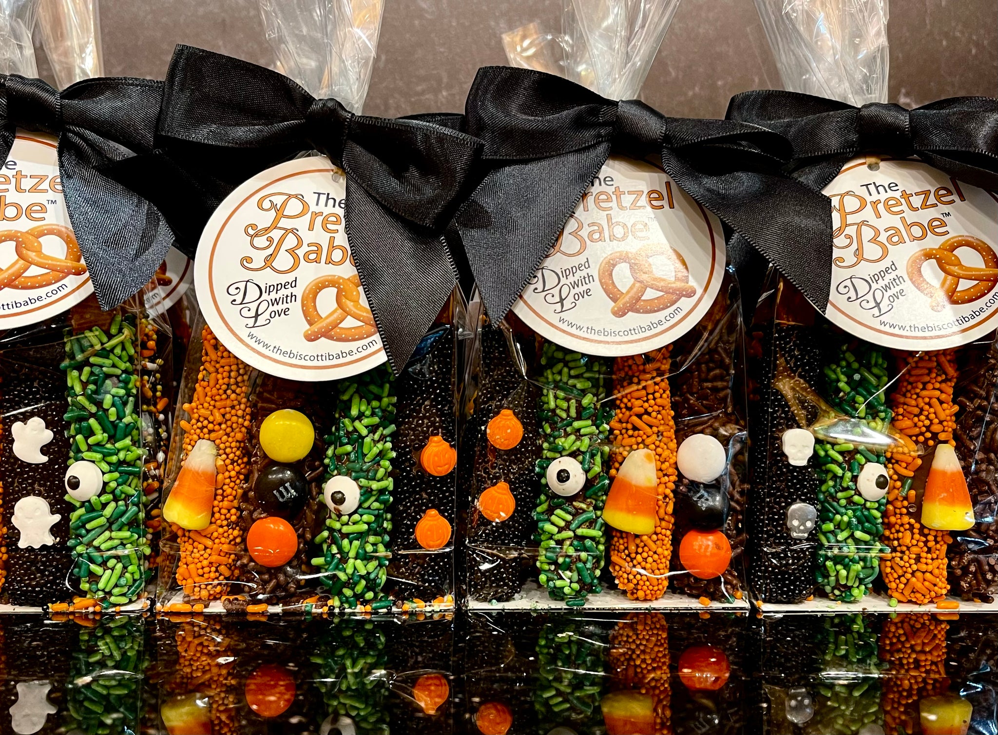 50 pack of our pretzels dipped in chocolate and decorated with an assortment of our classic toppings or specify seasonal toppings based on Holiday of your choice (Christmas, Hanukkah, Valentines Day, Easter, Mothers Day, Fatgers Day, July 4th, Halloween, Thanksgiving